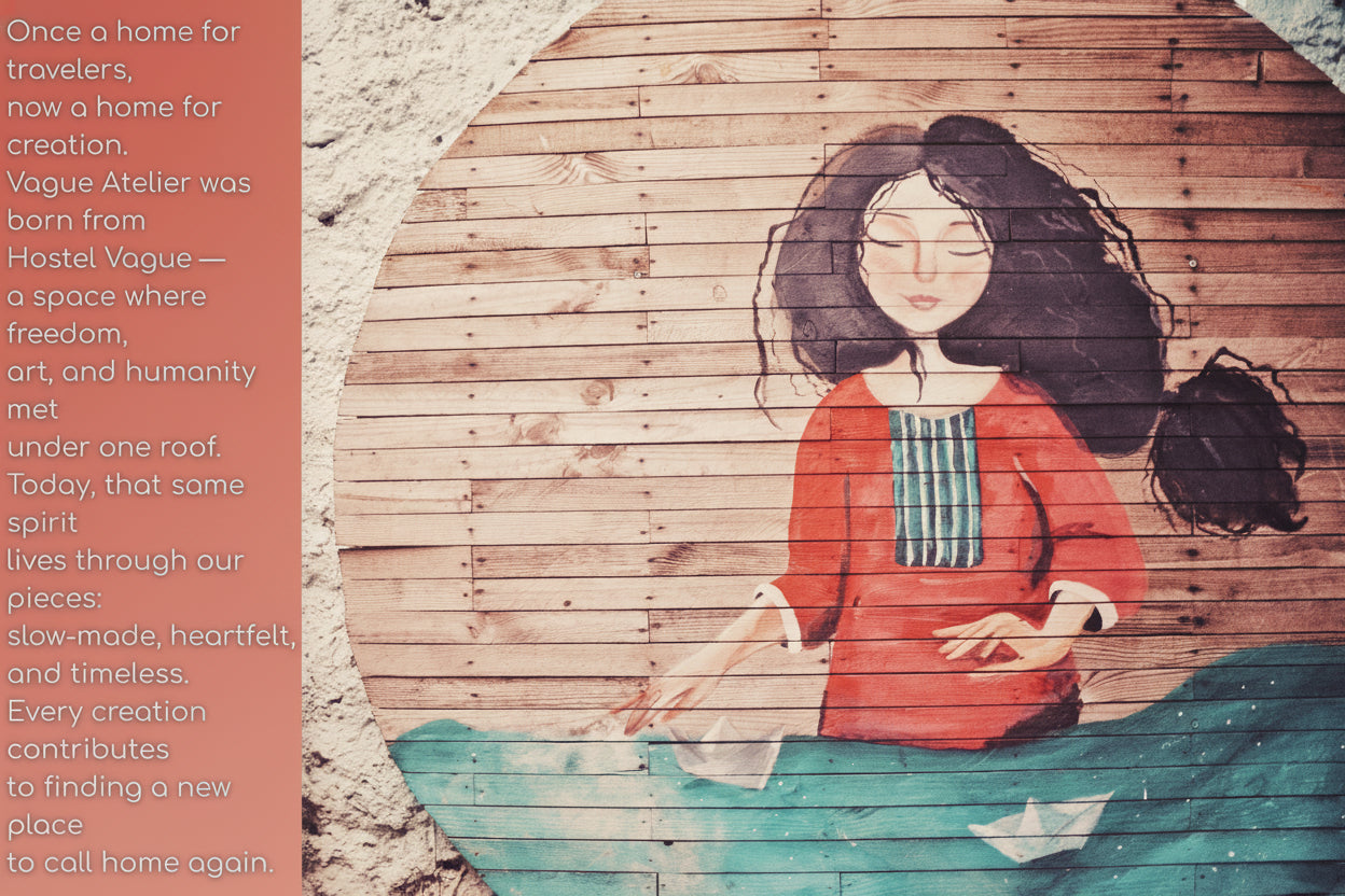 Thoughtfully handmade garments, revived materials, and timeless textures — all shaped with care for the earth and spirit.
